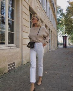 White jeans ARE NOT just for summer, they are gorgeous styled with knitwear and ankle boots for this time of year. As per these gorgeously stylish ladies.