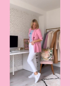 LOOK 2 – Pink blazer with trainers look
